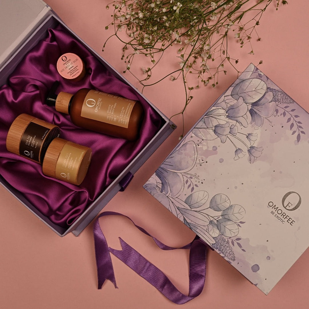 The Gift Box for Her is a thoughtfully curated assortment of luxurious skincare products enriched with exotic, natural ingredients to nourish, moisturize, and pamper your skin. Perfect for comprehensive care, this kit includes body wash, body butter, body scrub, and lip balm to ensure your skin stays clean, hydrated, and glowing. Treat yourself or a loved one to the ultimate skincare experience with this elegant gift box.